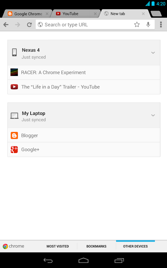 يعتبر من اهم مميزات هذا المتصفح العجيب ان يمكنك تصفح هذا الصفحات اللا محدود من المواقع التى تقوم بالبحث عنها و من خلال تسجيلك لحسابك الخاص فى هذا المتصفح يمكنك فتح هذه الصفحات و ارسالها من جهازك الخاص الى جهازك اللوحى لفتحه فى كل مكان